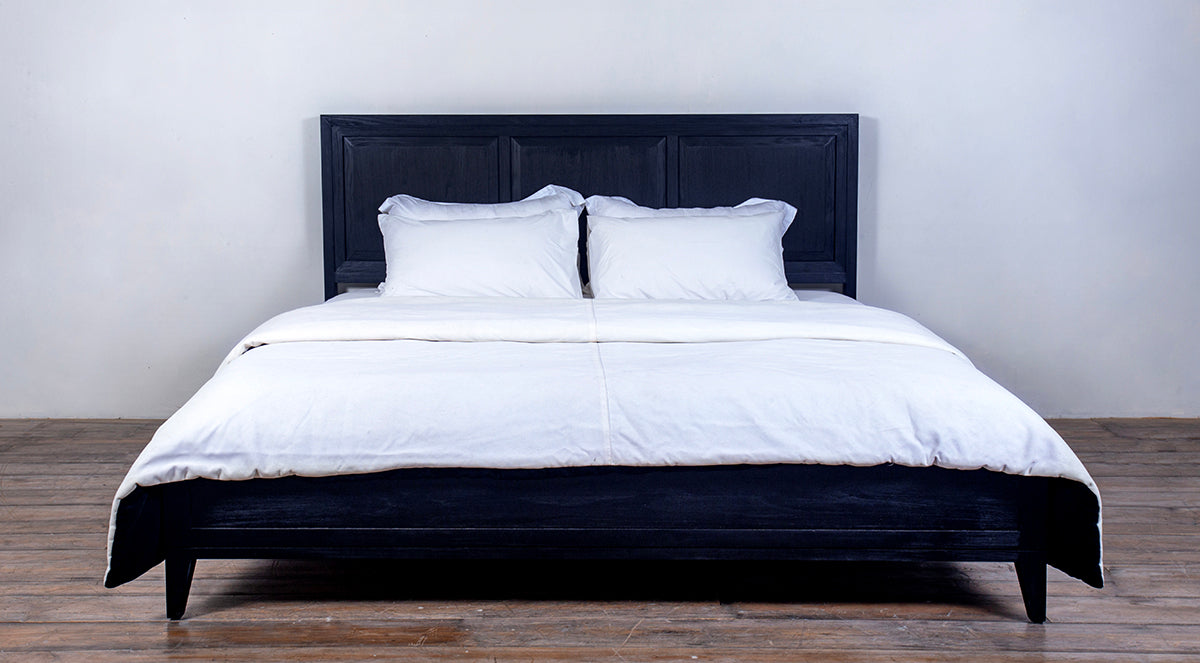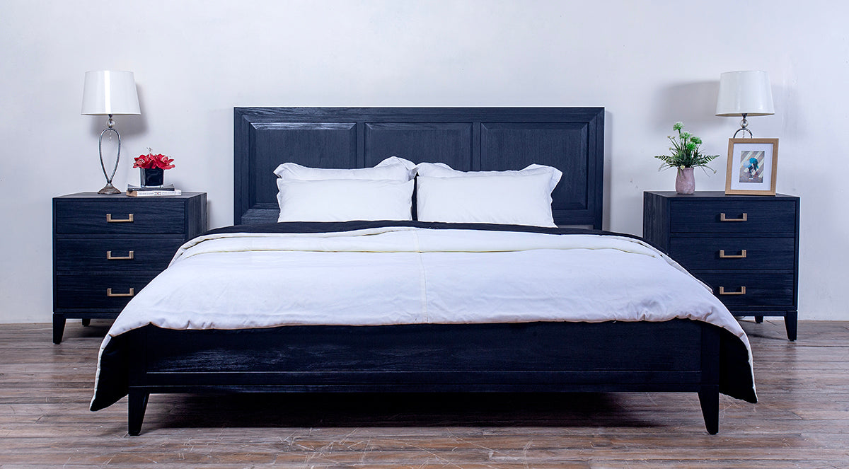Elevate your bedroom with the elegant Campaign Bed, featuring a sleek wooden panel and a lower headboard design. Crafted with a sturdy Ash Brown finish, this king-size bed offers both style and durability. The bed’s spacious dimensions provide ample room for relaxation, making it a perfect addition to modern or rustic bedroom interiors.