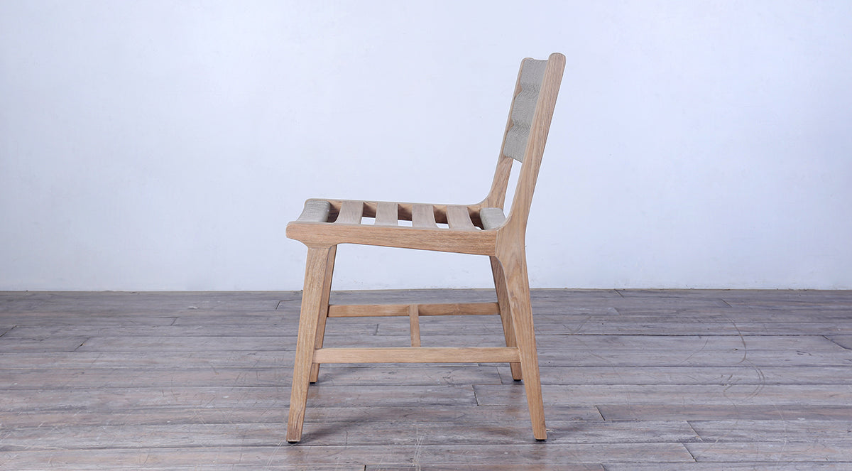 Bring relaxed elegance to your indoor or outdoor space with this beautifully crafted chair. Constructed from durable, A Grade Teak Wood, the frame showcases warm, earthy tones that blend seamlessly with a variety of décor styles. The backrest and seat feature intricately handwoven all-weather synthetic rope, offering a stylish texture while ensuring long-lasting durability against the elements.