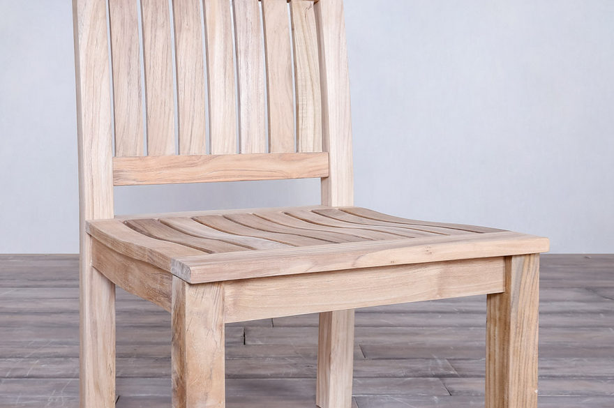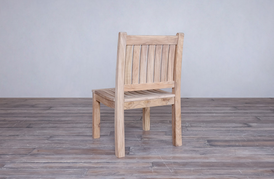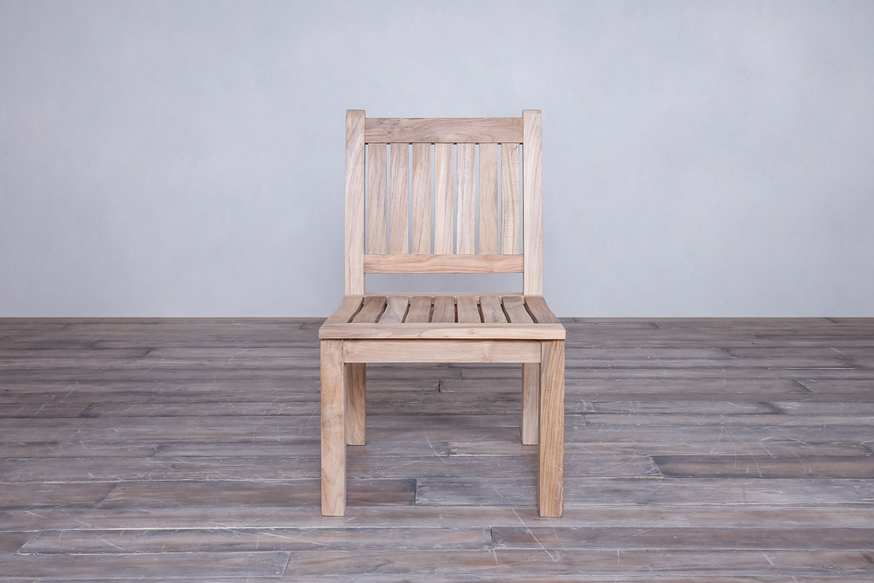 Tuscany Side Chair is made from A grade Teak wood and with raw sanded finish. Thin vertical slats for the back of the chair and seating is a classic style teak dining chairs.Code: MAT-2009