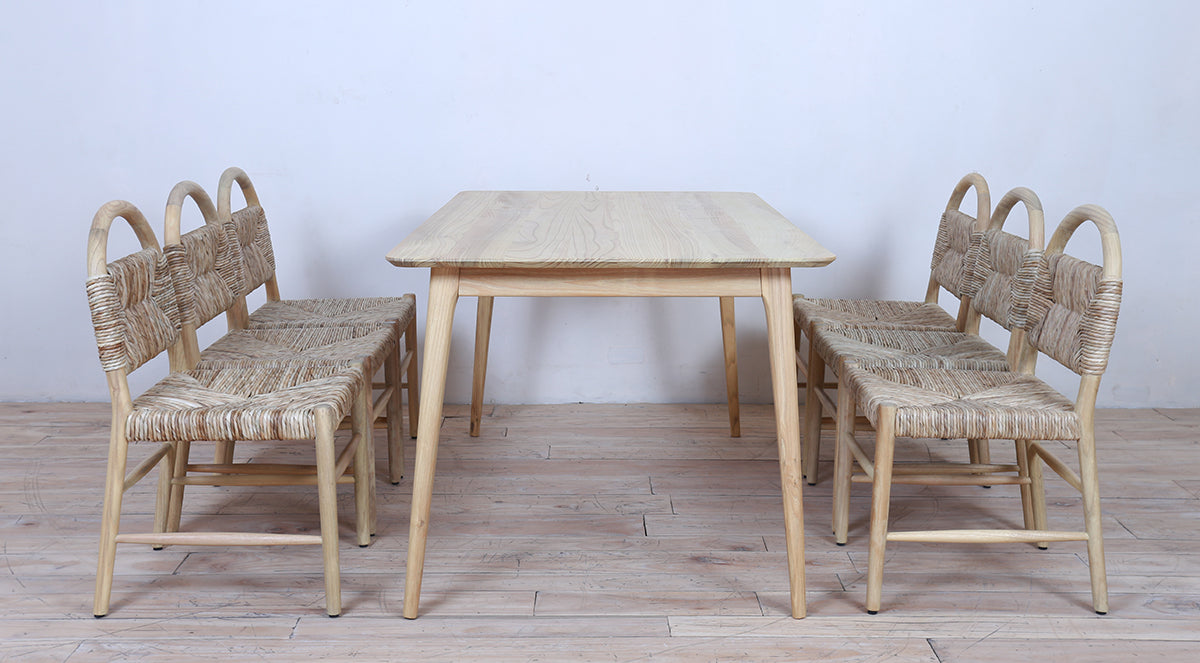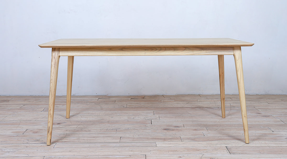 A timeless rectangular dining table made from solid wood with a smooth natural finish. Featuring clean lines and tapered legs, it offers both durability and elegance—perfect for everyday meals or special gatherings.
