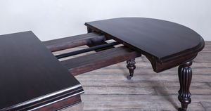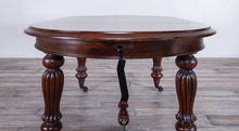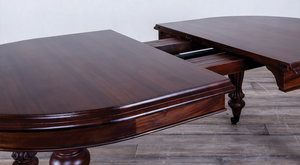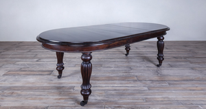 Victorian Oval Extending  Dining Table is made from mahogany wood and with Noyer finish. It is a great place to gather around and enjoy the dinner. Meet with friends. The table legs have wheels so easy to move around.