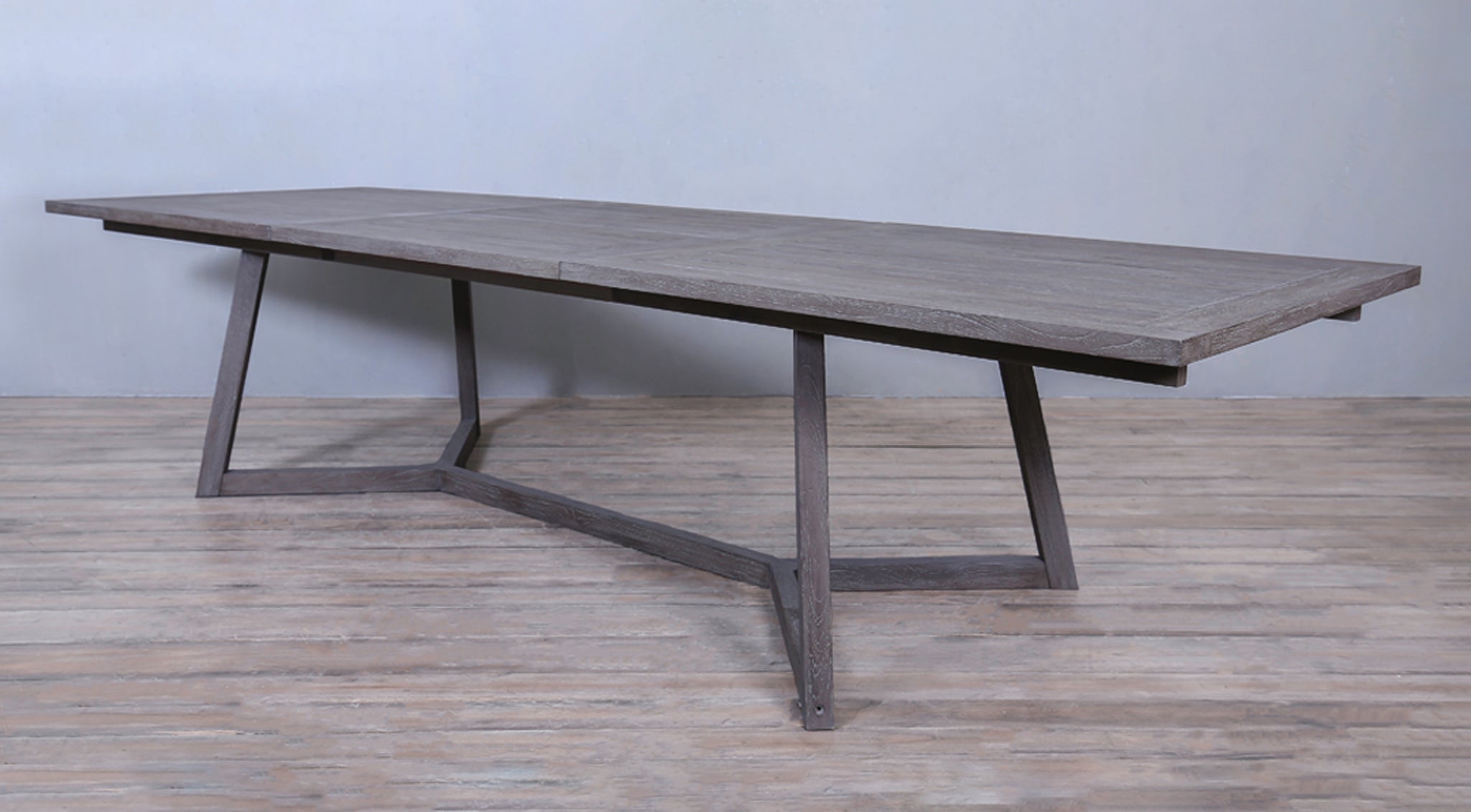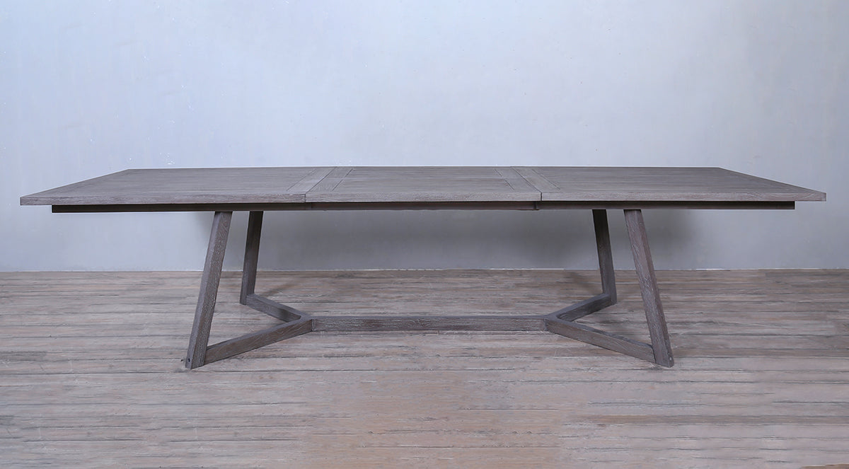 Milan Extending Dining Table is made from A grade teak wood and with naturalfinish. The long teak dining table is a great place for family get together. It can weather sunshine or rain. The legs have a triangular shape and gets connect with teak wood plank.