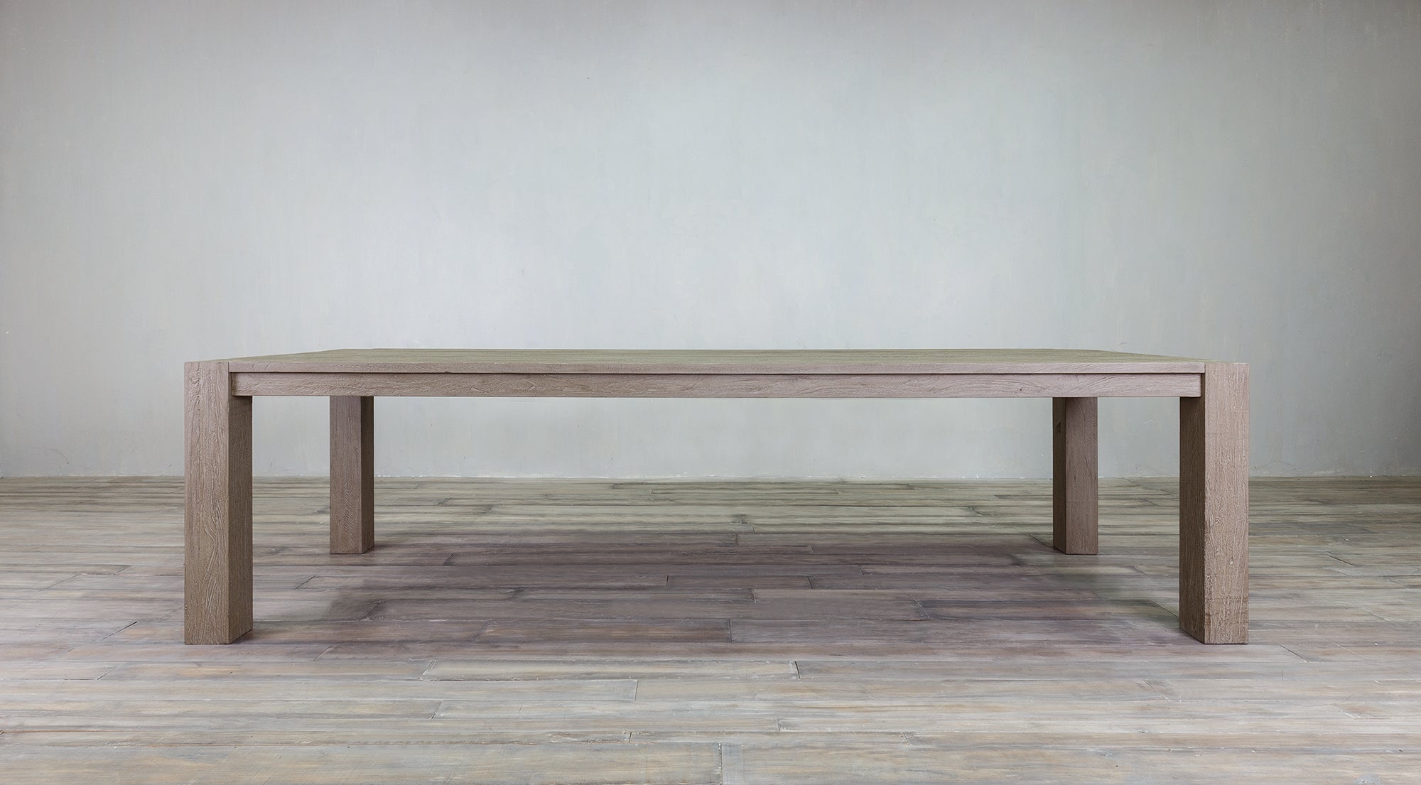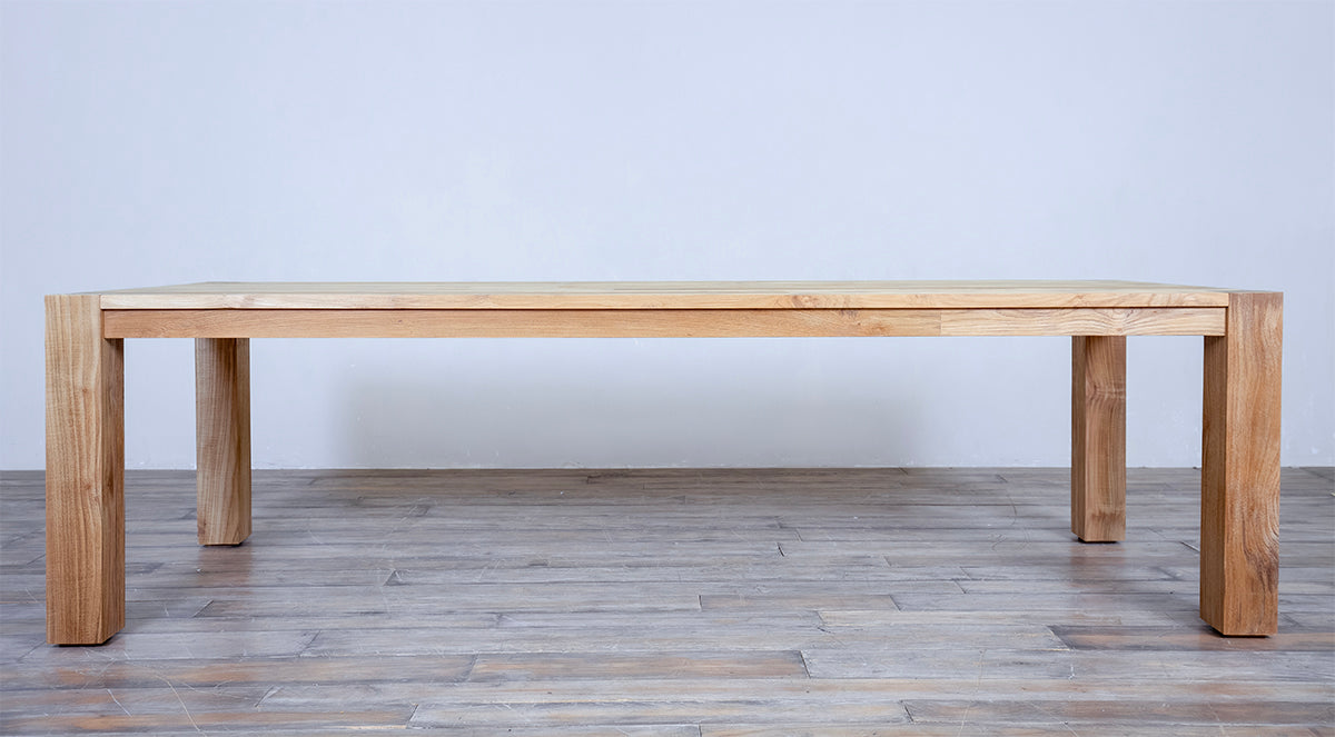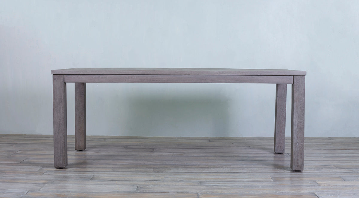 Constructed from reclaimed teakwood featuring a natural finish, the Parson Dining Table is tailored for outdoor and patio settings, offering a blend of long-lasting strength and classic design. It comes in a variety of sizes and colors to meet your specific requirements