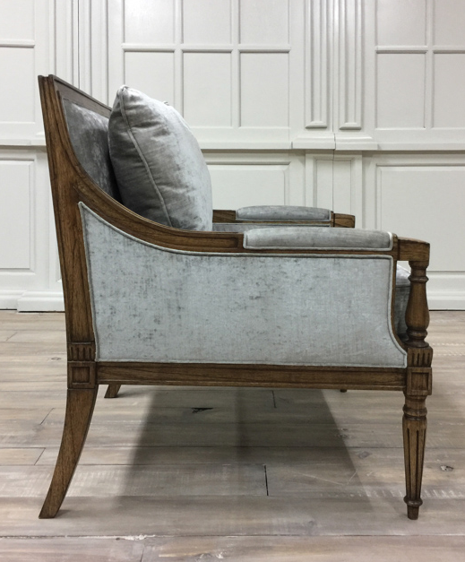 Ralph Lauren Bergere is constructed from Mindy Wood and Brandy oak finish. Bring French elegance to your living room with this armchair. The armchair is upholstered in a high performance fabric and features padded armrests and a thick foam-padded seat for the utmost comfort. Stunning craftsmanship is displayed on the intricately woven bamboo back, as well as the elegant carvings in the wood frame. Charming legs complete the look. It can be used as an occasional chair with side table or any elegant sofa.