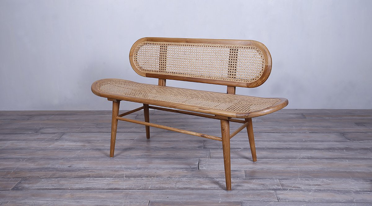 The back seat and back rest are made from rattan which is a design feature of this bench. the frame is molded wood and it creates an organic flow for the bench. It can be kept on the patio or in the garden. It can add the interest to any home and it is a conversation piece.